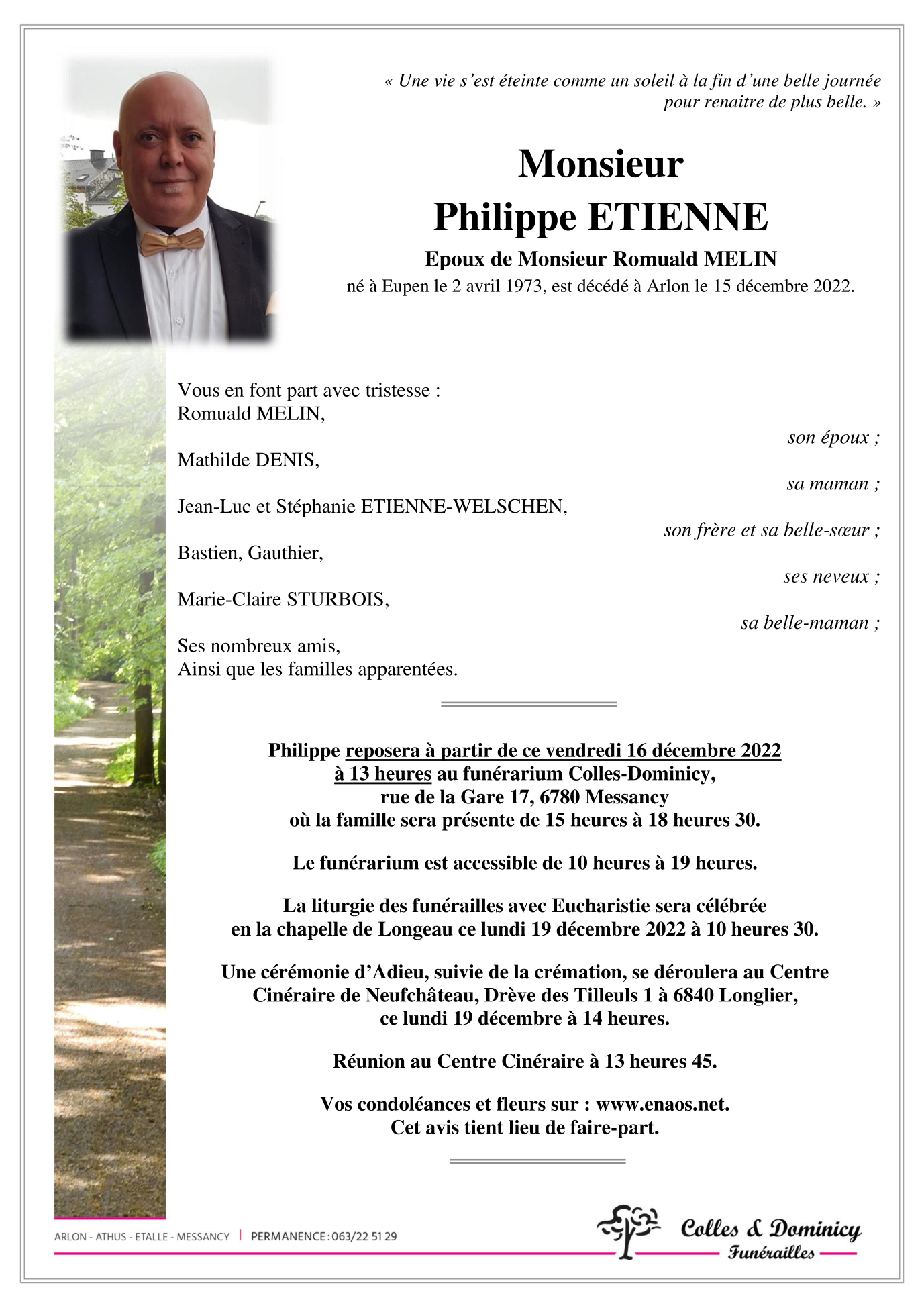 Décédé à Arlon (6700) le jeudi 15 décembre 2022 à l'âge de 49 ans