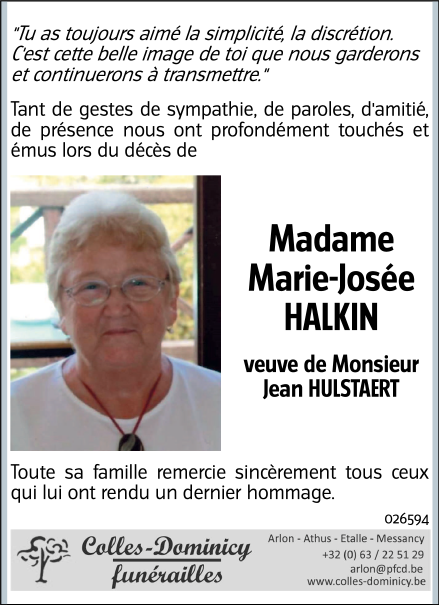 Décédée à Harnoncourt (6767) le vendredi 1 avril 2022 à l'âge de 85 ans