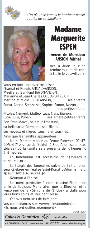 le samedi 22 avril 2017 à l'âge de 86 ans
