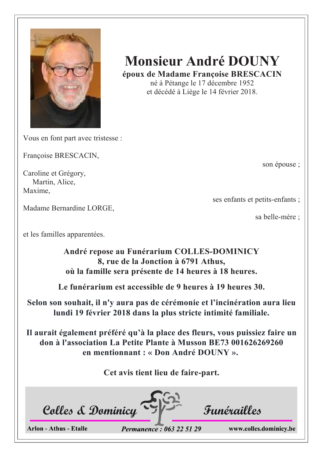 Décédé à Liège (4000) le mercredi 14 février 2018 à l'âge de 65 ans