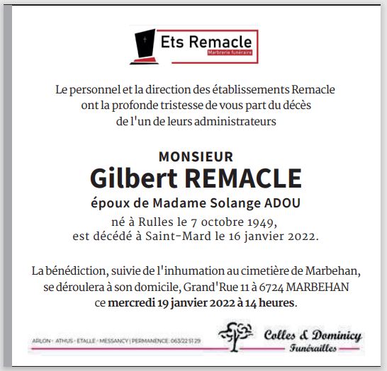 Décédé à Saint-Mard (6762) le dimanche 16 janvier 2022 à l'âge de 72 ans