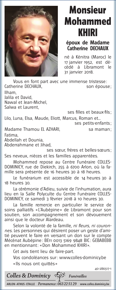 Décédé à Libramont (6800) le mercredi 31 janvier 2018 à l'âge de 66 ans