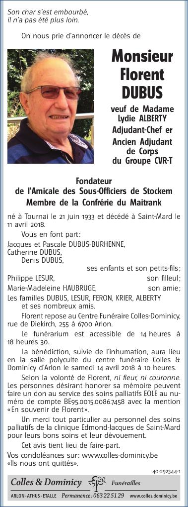 Décédé à Saint-Mard (6762) le mercredi 11 avril 2018 à l'âge de 84 ans